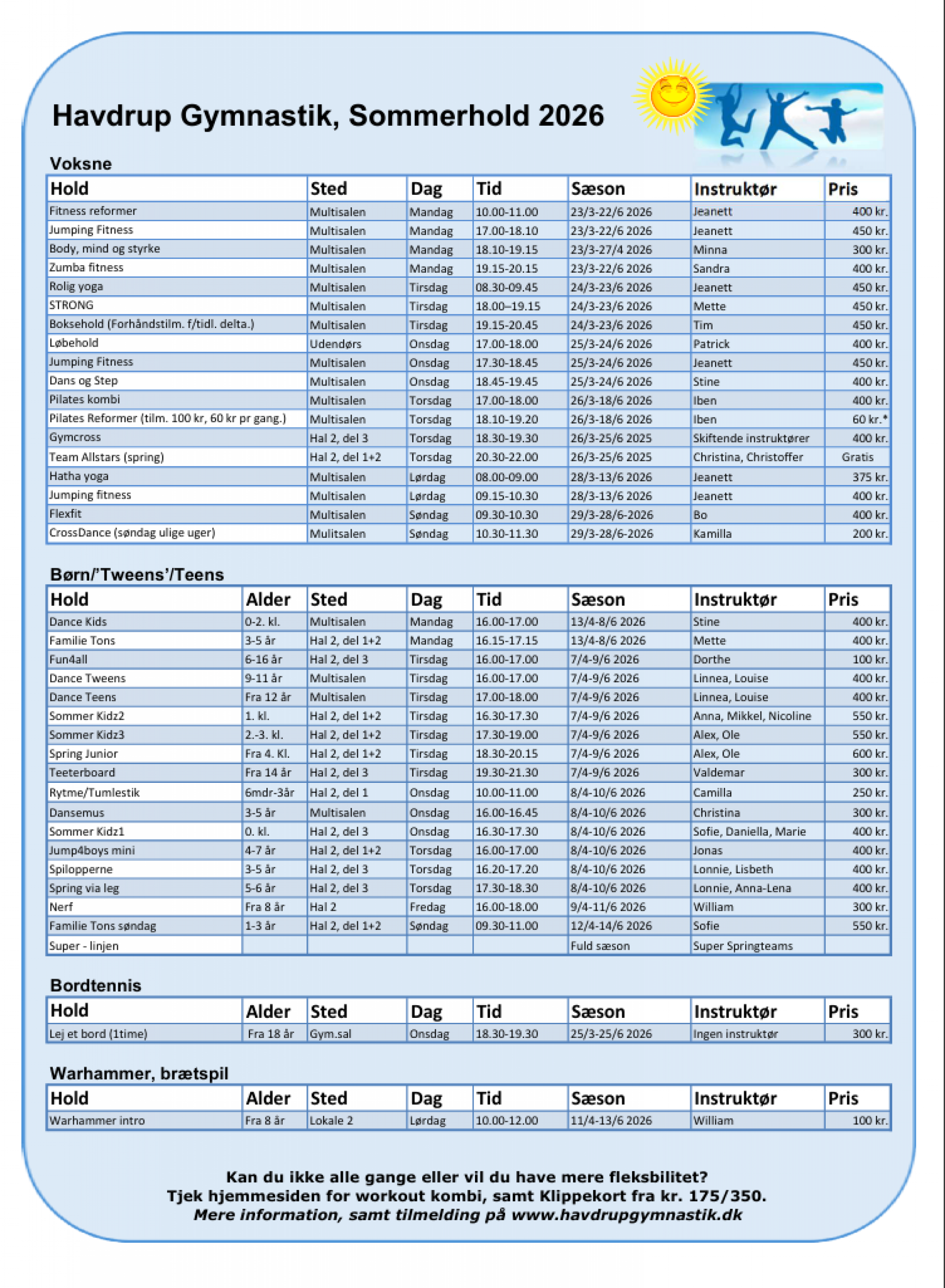 Havdrup Gymnastikforening drives af frivillige ildsjæle, som passer et almindeligt job i dagtimerne. Derfor kan telefonsik kontakt først forventes efter kl. 16.00 på hverdage, tak.